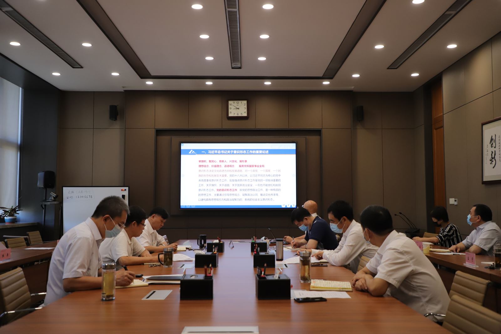 集团党委宣传部传达习近平总书记关于意识形态工作的重要论述,习近平总书记近期在经济社会领域专家座谈会、扎实推进长三角一体化发展座谈会、中央政治局第二十一次集体学习会上的重要讲话精神和《党委(党组)意识形态工作责任制实施办法》,结合汇报集团2020年度意识形态工作落实情况。