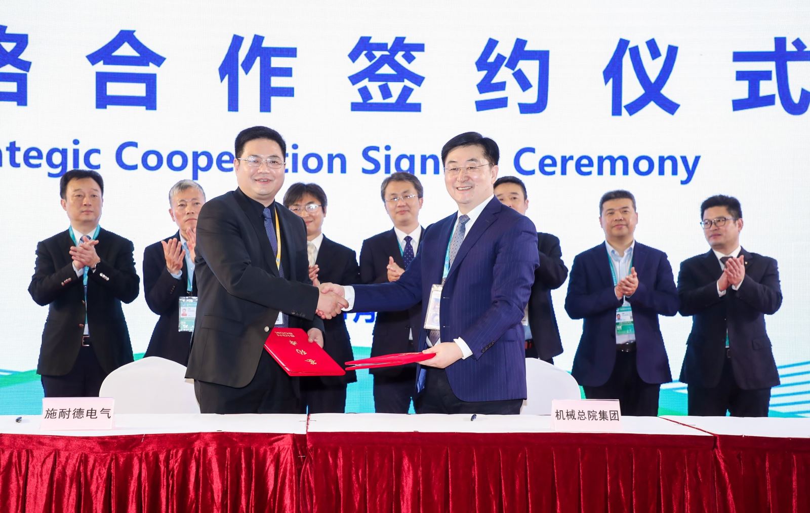 6日, 机械总院集团与施耐德电气在中央企业交易团集中签约台签署战略合作伙伴协议。机械总院集团副总经理娄延春,施耐德电气副总裁、工业自动化中国区OEM业务负责人崔志达出席签约仪式并签署协议。