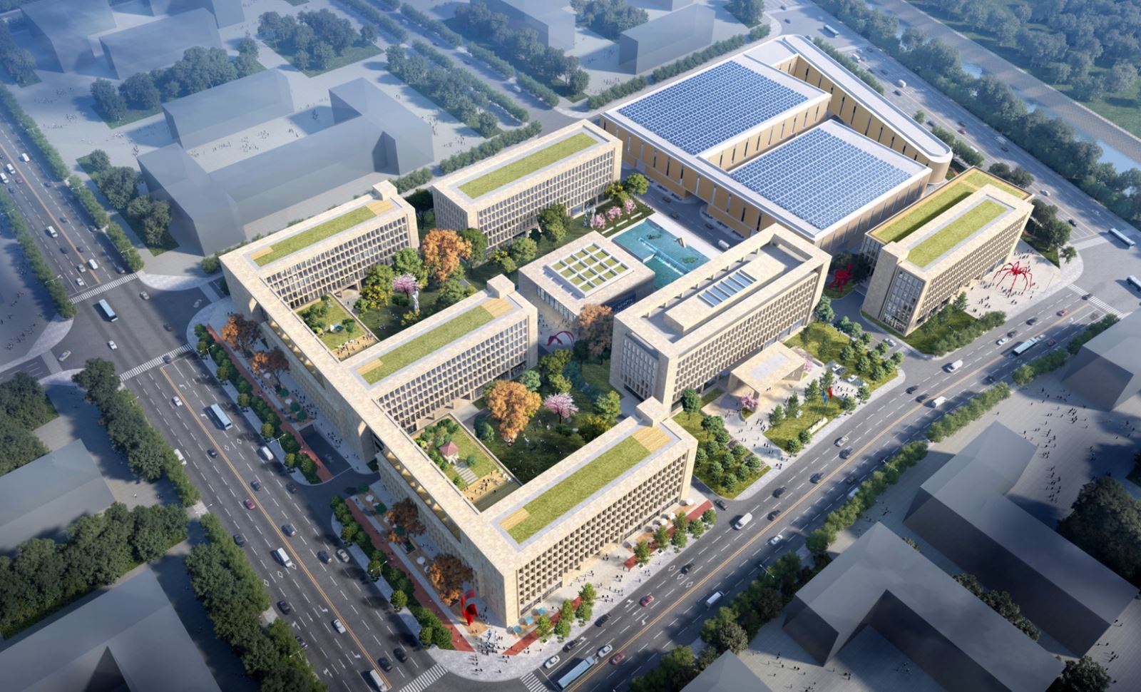 怀柔科技创新基地项目由中国建筑设计研究院院士团队负责设计,项目建设用地面积6.69公顷,总建筑面积12.76万㎡,项目总投资15亿元人民币。建成后,将形成“1+4+N”的科技创新体系,将极大提高集团高质量发展硬实力。