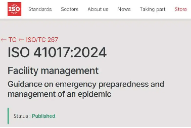 由我国牵头制定的ISO 41017:2024 Facility management — Guidance on emergency preparedness and management of an epidemic 《设施管理 疫情应急准备与...