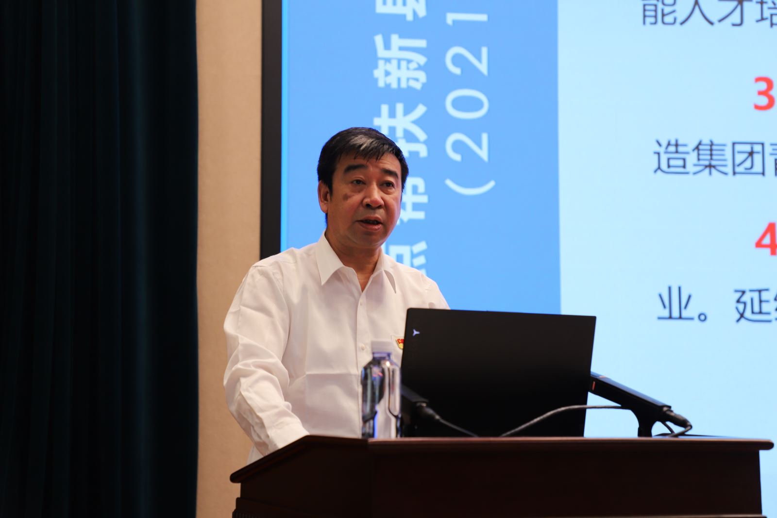 参加集团“学党史、强信念、促发展”干部培训示范班的总部领导干部、近两年新提拔院管干部及党支部书记和青年党员代表在主会场,集团各二级单位班子成员、相关职能部门负责人,共计180余人列席会议。